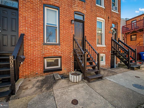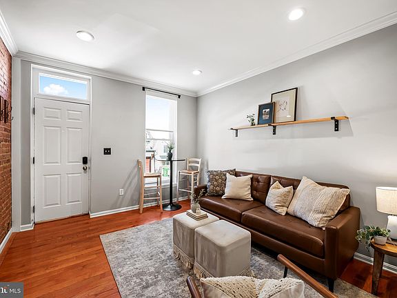 **Offer Deadline: Sunday, February 23rd at 5 PM!** Welcome to your cozy Riverside retreat, a tastefully renovated home with panoramic harbor and city views! Located on quiet Harvey Street, where parking is always plentiful and you are walkable from the many restaurants, coffee shops, and convenience 21230 has to offer. Thoughtfully renovated with high end finishes and close attention to detail. Upon entering, you're greeted with a warm and inviting living room with hardwood floors, recessed lighting, and plenty of natural light. High end kitchen with upgraded quartz counter tops, soft close cabinetry, slate flooring and SS appliances. Fenced in back patio. Exposed brick accents throughout, reminding you of that Baltimore charm. Upper level features the primary suite with vaulted ceilings in the bedroom. Large and tastefully updated bathroom with double sinks, slate flooring, and a walk-in closet. Access to the rooftop deck from the 2nd floor hallway. 2nd bedroom and 2nd full bathroom in the basement, equipped with an exterior walk-out, perfect to rent out! 2-in-1 washer-dryer in basement (2024). Roof (approx. 2021), Water Heater (2023). Don't forget about the fantastic views of the water, skyline, and Domino Sugar sign you can enjoy from your rooftop deck. Parking is always easy on this street!!