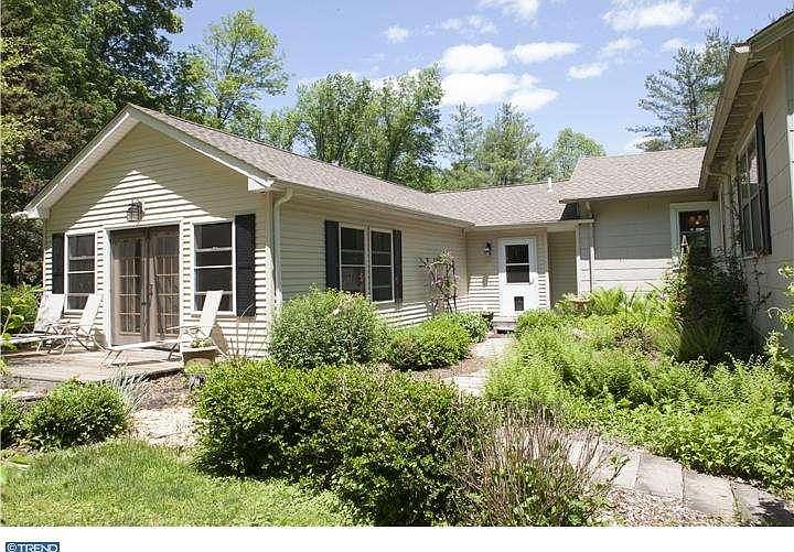 Resting at the foot of Haycock Mountain is this captivating ranch style home. From the moment you step onto the property, you sense the magic of this rural retreat! The creative owners have transformed this property with a major addition, outdoor studio space, screened in party pavilion and more! The floor-plan is open with sitting area, updated kitchen, amazing light filled rooms and neutral colors and hardwood floors throughout. A masterful blend of country & contemporary, creating a warm and welcoming atmosphere. The addition offers a Great Room with fireplace, a Master Bedroom & Master-bath all with vaulted ceilings with French doors out both rooms. This property has outbuildings, potting shed, chicken coop, gardens, and walking trails that meander up the mountain. If you are looking for a move-in ready home in a great setting with a blend of country charm and subtle sophistication this is the home for you. A small babbling brook runs along side the property. Beautiful stone walls surround it and adds yet another layer to this natural oasis!