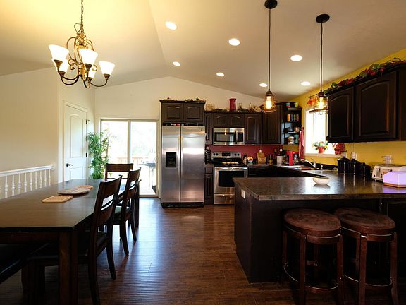 A great home with a walkout basement that opens to a large back yard! The lot nestles up to the ranch behind it! With a view of the mountains out of the front window. 3 bedrooms, plus a sleeping room. Master bedroom has 2 walk in closets. Large living space in the basement. Basement is 80 percent finished, a great opportunity to gain some equity. This is a must see for a great price. Auto lawn sprinkler front and back.
