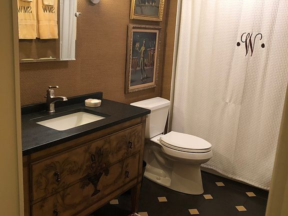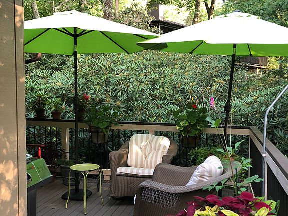 Complete renovation 3 years ago-new carpet, floors throughout, bathrooms, kitchen, ceilings, crown mold, lighting. Deck overlooks pond and rhododendron forest. Working wood burning stone fireplace. Attention to detail enhanced by designer.