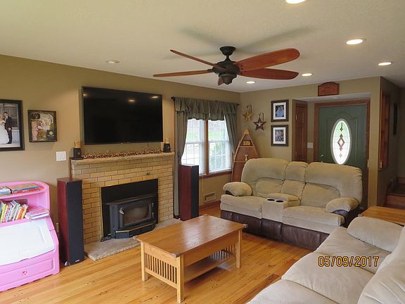 Pride in ownership shows in this move in ready home on a private drive in a quiet neighborhood. The bifold doors and trim have been updated with oak wood. There are pegged hardwoods floors throughout and a wood burning fireplace. Stainless steel kitchen appliances stay. Bathroom recently updated with travertine tiled heated floors, travertine tiled shower, quartz counter top, and copper bowl sink. The craft room in the basement is plumbed for a sink. Privacy fence is part of this property. Updates per seller- windows and vinyl siding 2002, furnace and AC 2008, electrical panel 2013, roof 2015.