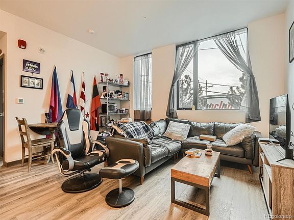 Step into the vibrant lifestyle of the Santa Fe Arts District with this stunning 2-bedroom, 1-bath Affordable Penthouse at La Tela Condominiums. Located in the heart of this trendy neighborhood, this condo offers breathtaking views of Denver, showcasing modern cabinetry, a fully equipped kitchen with stainless steel appliances. With an in-unit washer/dryer, ample storage, and space, this penthouse is designed for comfortable urban living. La Tela Condominiums provides secure indoor bike storage, LED lighting throughout, and on-site solar panels for added sustainability. The Santa Fe Arts District is known for its walkability, boasting galleries, restaurants, and a variety of shops just steps away.