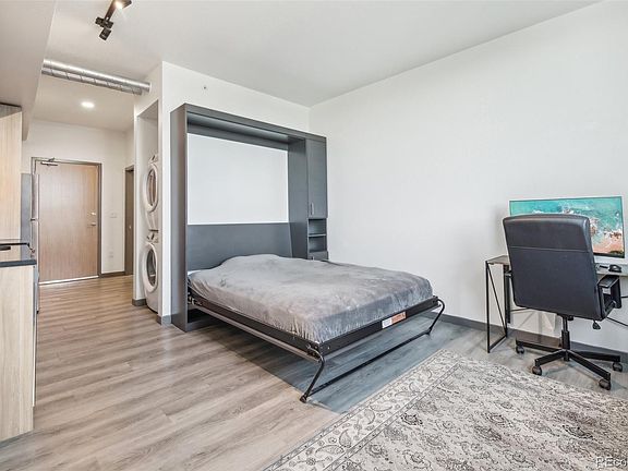 $2,500 Down Payment Assistance!!! Affordable Penthouse Studio in La Tela Condominiums, located in the heart of the trendy Santa Fe Arts District. Studio offers breathtaking views of Denver, modern cabinetry, a fully equipped kitchen with stainless steel appliances, built-in Murphy bed, in-unit washer/dryer, sufficient space for a small sofa and work area, ample storage for food, tools, and personal belongings. La Tela offers secure indoor bike storage, LED lighting throughout, on-site solar panels for secure common areas. Santa Fe Arts District is a very walkable neighborhood with galleries, restaurants, and a variety of shops.