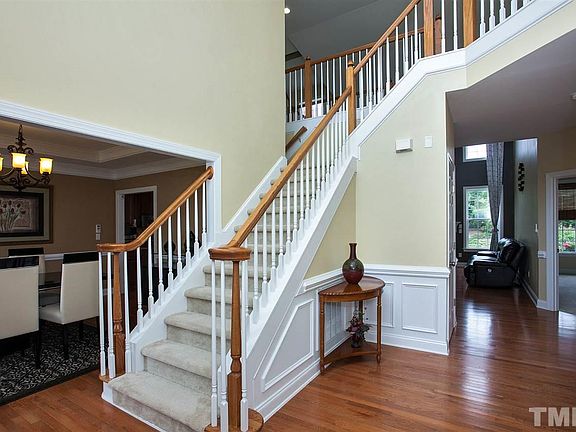 Stunning North East facing brick front Executive home in desirable West Cary just moments away from RTP/540 in Weldon Ridge Estates! 2-story foyer open to formal dining & living rooms - dramatic 2 story family room w/incredible natural light open to the expansive breakfast room & gourmet kitchen w/5 burner gas cooktop, double ovens & microwave, granite counters. 5 bedrooms & 5 full baths - w/1st floor suite w/full bath - all rooms are large & spacious. Super level backyard GREAT neighborhood amenities!