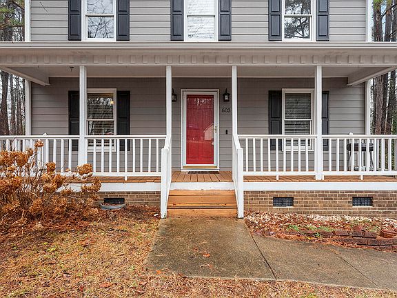 Welcome to this wonderful home in desirable Kimber Woods. Situated in a quiet cul-de-sac, this 3 bdrm/2.5 ba home boasts an inviting rocking chair front porch, hardwood flooring in the dining room, living room, foyer and stairs. Freshly painted throughout and new carpeting upstairs. Cozy up to a warm fire in the family room, or enjoy the wooded view off the back deck or from the 15X12 glass enclosed porch. Centrally located kitchen (moveable island) with an adjacent dining room and breakfast nook. Owner's suite features dual vanity and walk in closet. Convenient to parks, shopping, restaurants, 70 and I-40. Storage shed with electricity. No HOA.