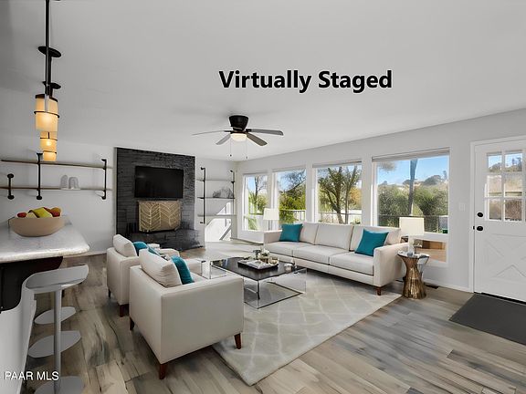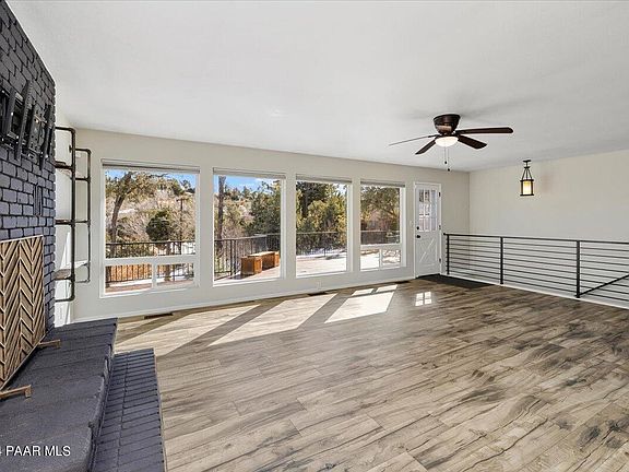 Nestled in a quiet cul-de-sac just minutes from downtown Prescott, this beautifully updated 3 bed/2 bath home is situated on half an acre w/space for RV parking and offers comfortable indoor/outdoor living options boasting tremendous views. The spacious main living area is complimented with a wall of windows that look out over the large composite deck with the tree lined Prescott hills and mountains in the background. The well-appointed kitchen is adorned with attractive granite countertops that blend seamlessly with the espresso-colored cabinets and finished with stainless steel appliances. Recent updates include wood plank flooring that runs throughout the main living spaces & bedrooms with a just finished tiled shower in the primary bedroom.
