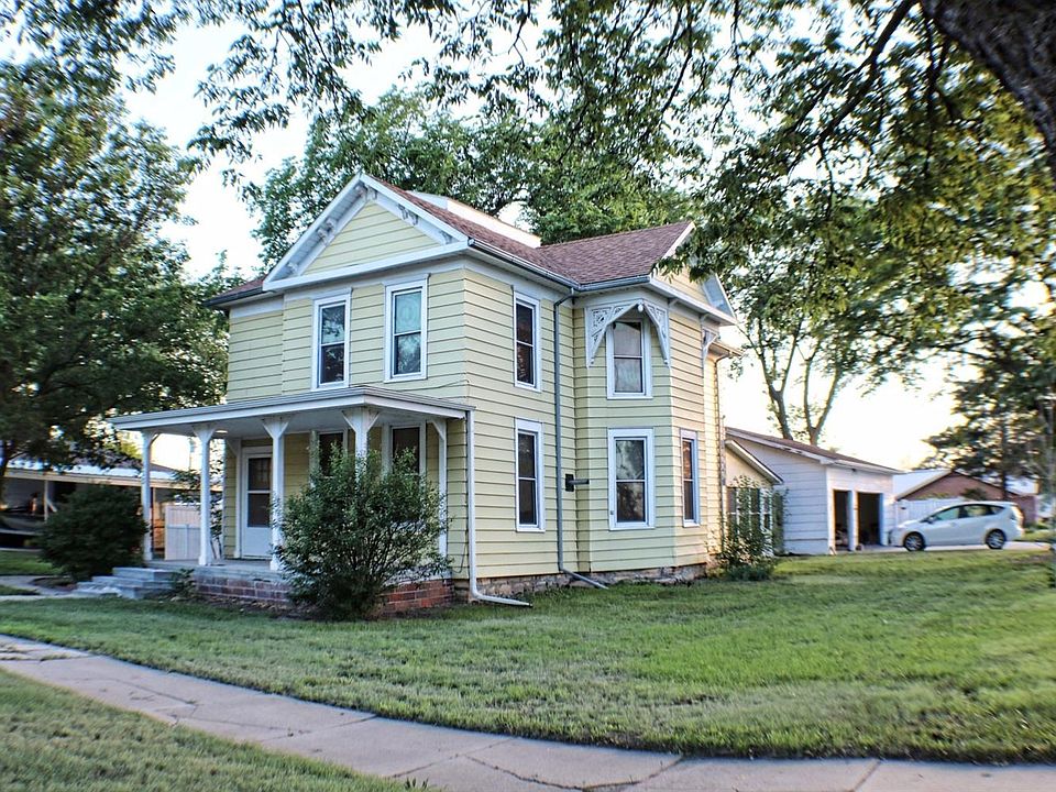 Spacious and charming corner-lot home minutes from Glen Elder Lake! Huge garage with plenty of space for your boat plus two generous sized vehicles. Victorian home with central heat/AC, updated double pane and double hung energy efficient windows, pellet stove for efficient heating, large screened patio and vinyl privacy fence around backyard for kids or animals. Tall ceilings throughout as well as generous sized bedrooms. There is a limestone block basement for storage.