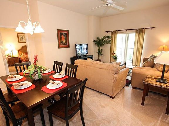 THIS IS A TRADITIONAL SALE OF A GROUND FLOOR FULLY FURNISHED CONDO LOCATED IN BAHAMA BAY VACATION RESORT. THE ZONING OF THIS PLATINUM RATED RESORT IS SORT TERM RENTAL. IT CARIBBEAN THEME RESORT ON 70 +/- ACRES OFFERING MANY AMENITIES INCLUDING GUARDED24/7/365 AND GATED ENTRANCE, CLUBHOUSE WITH RECEPTION/FRONT DESK, INTERNET CAFE, SUNDRY SHOP, FITNESS ROOM, LIBRARY, RESTAURANT, BARS, FOUR SWIMMING POOLS AND SPAS, SPLASH PAD, FISHING DOCK, SAND BEACH, VOLLEYBALL, PLAYGROUND, TENNIS, BASKETBALL, WALKING PATHS AND MORE. THE CONDO SLEEPS 6 - 8 COMFORTABLY, NICELY EQUIPPED KITCHEN, AND FAMILY ROOM GATHERING AREA. THIS CONDO RENTS VERY WELL AND IS LOCATED ON THE POLK AND OSCEOLA COUNTY LINE WITH EASY ACCESS TO WALT DISNEY WORLD, SEVERAL CHAMPIONSHIP GOLF COURSES, OTHER AREA THEME PARKS SHOPPING AND DINNING.