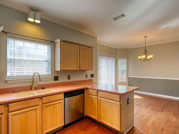Spacious home recently updated with new waterproof wood flooring on main level..  Former model.  3/2.5, two fireplaces with gas logs, roomy bonus over 2 car garage.  Master down, separate utility.  Conveniently located.  Near Hurricane Creek Landing.  No HOA.  Newer architectural roof.  Split HVAC.  Stainless appliances. Two tier deck. Home warranty to buyer at closing.