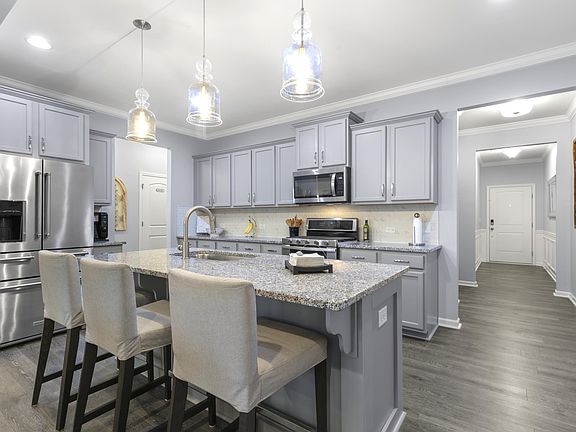 - Crown Molding, Entrance Foyer, Granite Counters, Kitchen Island, Pantry, Recessed Lighting, Smooth Ceilings, Storage, Walk-In Closet(s)