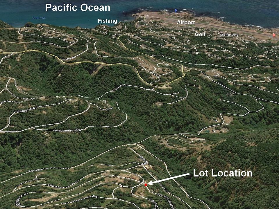 Offered today is a one third of an acre lot located at 603 Muskrat Circle above Shelter Cove in Whitethorn California. Located on the famous Lost Coast where the King Range meets the Pacific Ocean.This lot is located in the "Zoo" neighborhood of Shelter Cove. Lot is on a paved road and nice homes are nearby. The lot directly next door sold for $28,000 recently. Please note, I have not been to this lot. There is a sloped lot and I do not know the degree of slope and the set backs needed for building. Enjoy hiking, fishing, golf, wine tasting, and the black sand beach of this historic fishing seaside community. Or, land bank this lot -- as Will Rogers said, "they ain't making anymore land".Please visit the lot. Google the address 603 Muskrat Circle, Whitethorn, CA 95589.The google maps coordinates are: 40.048499,-124.058348It is the buyers responsibility to complete all due diligence needed to determine the condition, market value, or investment value of this asset.APN 109-091-037-000 Humboldt County Building & Permits (707) 445-7541 Shelter Cove Community Services (707) 986-7447