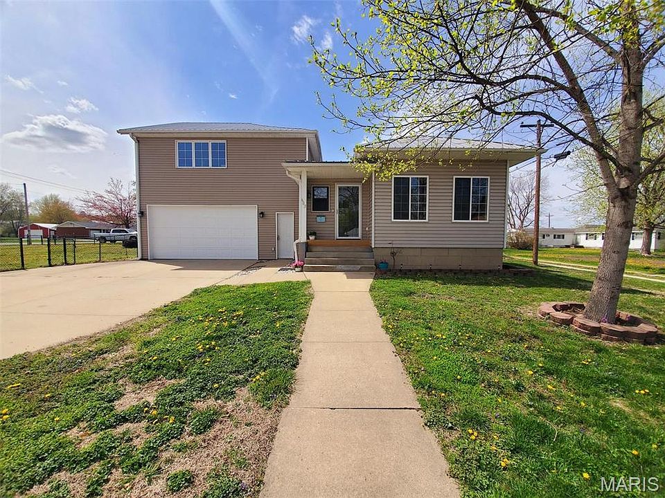 All new since 2024: metal roof & chimney cap, furnace, garage door/opener, all appliances (refrigerator, stove/range, dishwasher, microwave, washer, dryer), wind screens, added insulation, gas line to furnace, basement stairs, paint, trim, flooring & more! All that's left to do here is move in! This very well-cared for home offers 4-beds (one currently used as a home office overlooking the back deck), two full baths, a huge living room featuring hardwood floors and plenty of natural light. The open kitchen/dining area includes all new stainless steel appliances. You'll appreciate the basement storage & the attached front entry porch - currently being finished out, this will be a bright new entryway to your new home. The kids will love the fenced yard and you'll enjoy having the double corner lot. Plenty of storage, outlets & a clean interior make this one worth a look! Utility providers here include Ameren Electric, Liberty Gas, City water/sewer/trash & Rise Broadband fiber. Additional Rooms: Mud Room