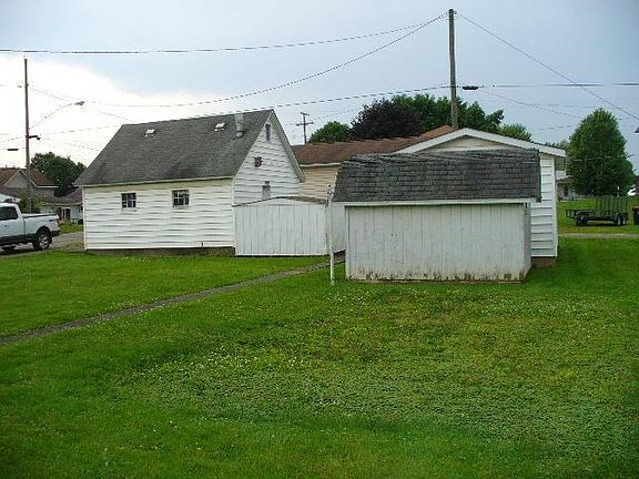 Nice 3 bedroom 1 bath home on spacious corner lot. Newer roof, siding, furnace, and hot water heater. 2 car detached garage with 3 other out buildings.