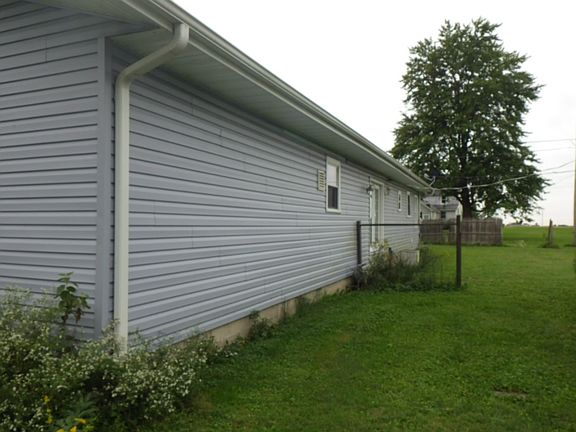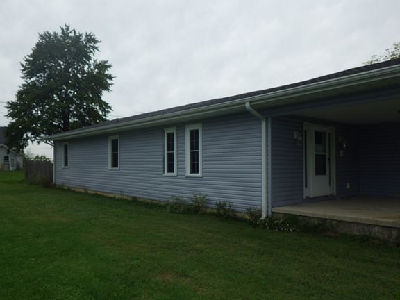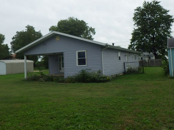 This 1 story, 3 bedroom and 2 bath home is located in the small, quiet town of Farmland. This property features a living room open to the kitchen and dining room, a laundry room, and a bonus room that could be used as an additional bedroom or home office. Additionally, there is also a 2 car detached garage on a large lot, giving you plenty of space for outdoor activities.