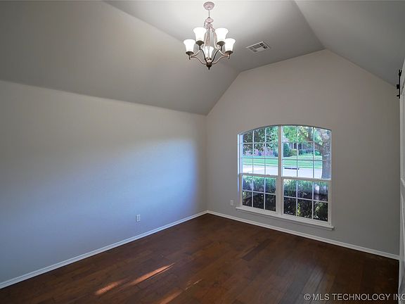 Beautiful updated move-in-ready brick home in Jenks school district, new paint (July 2023), carpet (July 2023), new roof (2019), new gutters (2019), new wood floors (2018), new AC unit (2018). This 4 bedroom, 2 bathroom, home comes with a flex office or formal dining room. It is professionally landscaped, sprinkler system, garage storm shelter in the slab, Ring doorbell camera, double sink vanity in master & hallway bathroom, walk-in closets, ceiling fans, brick fireplace (gas starting), inside utility room for laundry, and comes with a transferrable 1 year home warranty. Conveniently located about 0.1 miles from a neighborhood park, 0.4 miles from South Lakes Golf Course, 2.1 miles from Jenks High School, & 2.1 miles from Tulsa Hills Shopping.