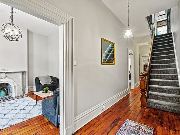 Welcome to City living in the Historic Mexican Wars Streets. This fabulous home greets you with original hardwood floors, 14 foot ceilings, 6 fireplaces (1 woodburning, 2 gas, 3 dec). The updated kitchen features stainless appliances, granite counters, a wood burning fireplace and access to the rear courtyard. Enjoy viewing the City skyline from the rooftop deck, take in a quiet night under the stars or enjoy the fireworks. This home is convenient to Allegheny Commons Park and all of the North Shore attractions. A brand new roof, deck surface and skylights along with a high efficiency furnace less than a year old are waiting for you.