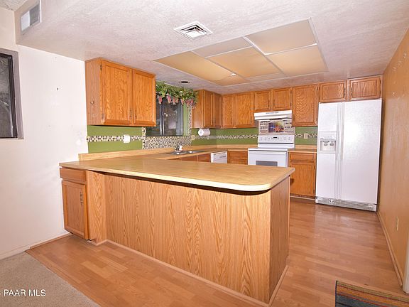 Quaint 3 bed-2 bath home in the Prescott Country Club w/ mature landscaping, screened Arizona room, attached garden shed, utility room off garage w/ washer and dryer, 2 car garage features plenty of storage. Office features built in desks and cabinets w/ laminate flooring. All bedrooms feature walk-in closets.