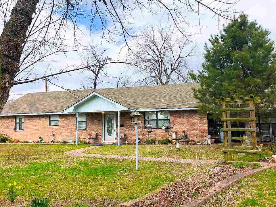 This beautiful brick home in NE Antlers has all you could wish for in a FOREVER home!!! It sits on an oversized, fenced corner lot close to downtown. As you pull into the circle driveway, you will see gorgeous flower beds, rose bushes and mature trees scattered throughout the property. Follow the sidewalk to the covered front porch where you will walk into a large open concept living/dining/kitchen area with high ceilings, kitchen includes all appliances including fridge and dishwasher. There is a second living area/sunroom to the right and to the left are 3 bedrooms, 2 bathrooms! This home also has a 2 car garage, covered back porch, fenced backyard with garden area perfect for vegetables or even fruit trees and a shed to store all your gardening/yard work equipment. You want want to miss this amazing home, call today to schedule your showing. SELLER IS RELATED TO A LICENSED AGENT