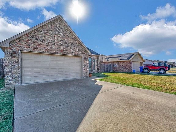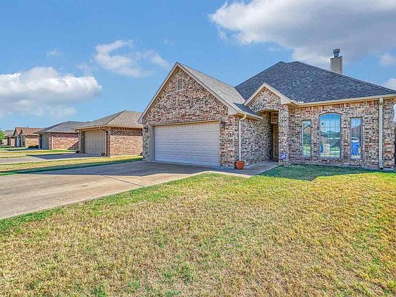 Absolutely beautiful awesome open floor plan. Large living area, with high ceilings, wood burning fireplace. Separate, big dining area. Great kitchen, with breakfast bar. Beautiful wood work. Lots of cabinets & granite countertops. Stainless steel appliances. Large utility room with extra cabinets. Large primary bedroom. Luxury bath with whirlpool tub & separate tiled shower. Oversized 2 car garage. EP painted floors. Big wood fenced in yard. Extended concrete patio. Great schools. VA assumable loan 3.375% rate with equity or new loan. Schedule private showing. Call 580-248-8800 or text 580-581-7870 for more details.