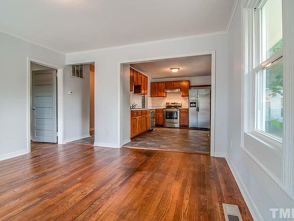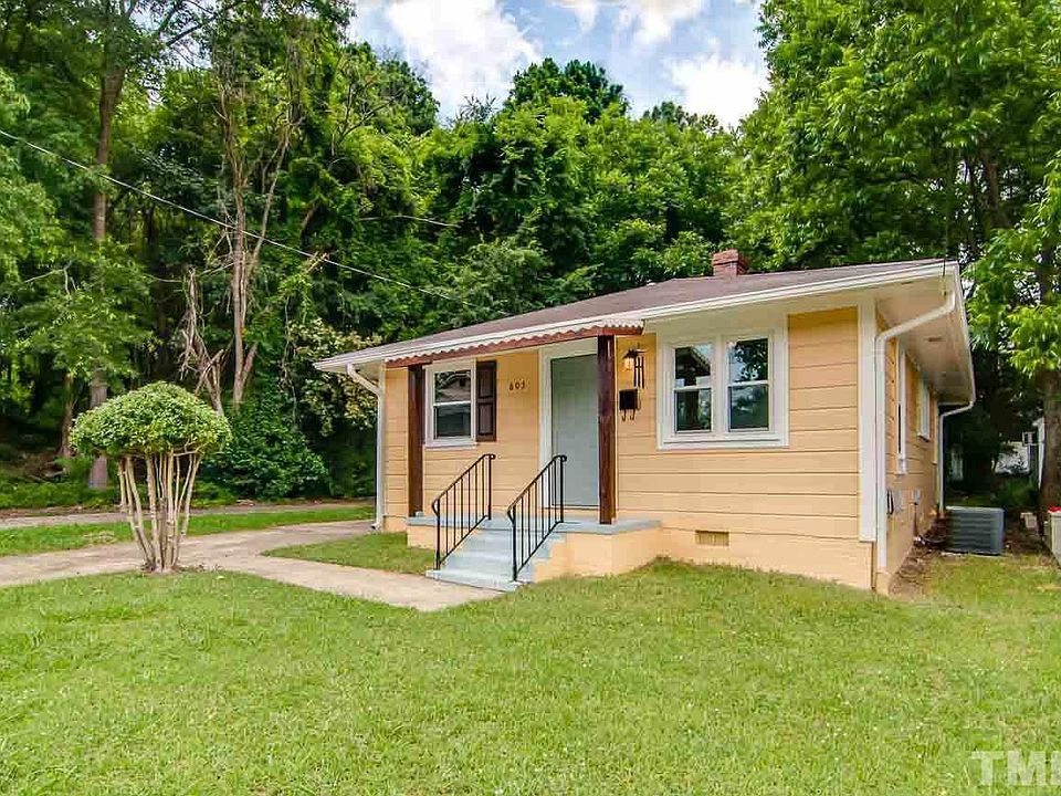 Super-cute Mid-Century Cottage near Downtown Durham. Gleaming oak hardwoods, moldings & some solid, pine doors. New windows + paint in and out. Eat-in kitchen opens to Living Room. Stainless Frigidaire appliances. New vanity & subway-tiled bath/shower in bathroom. Great 2/1 layout + utility room w/ back door. Cool AC + Gas furnace. New roof and gutters. Greenspace to the West: paved walking trail aside wooded area. 2 short blocks to Shepard Middle School & 6 blocks to North Carolina Central University.