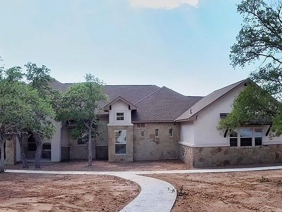NEW CONSTRUCTION!Texas Sandstone & spacious porches envelope this lovely home situated within Oak grove. Circular driveway. Gourmet kitchen w/generous granite counters;cast iron sinks;vegetable sink w/disposal in work island;overcounter lighting;dbl ovens w/convection;microwave;5 burner cooktop & downdraft under stone arch;cavernous pantry; eat-at curved bar w/stone kick wall. Great room w/corner WBFP& 12' ceilings, ceramic tile flooring. Gameroom. Handscraped wood@ Study/bdrm.Room for POOL!Backs to creek