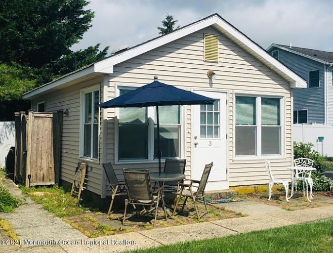 COTTAGE-BY-THE-SEA. The perfect getaway for those long summer days and those quiet winter evenings right in the middle of the relaxing South Monmouth Shore area. A unique one bedroom unit with all the support---Full bathroom, eat-in kitchen, Central Air, paved patio, outside H&C shower, outside storage for beach items, new stove and dishwasher, flower garden at side of unit, extra large assigned parking spot at side of house. Add to all that, easy access to Hways and train. 5 mins. to Manasquan or Spring Lake shops and restaurants and cycle to the beach or walk.