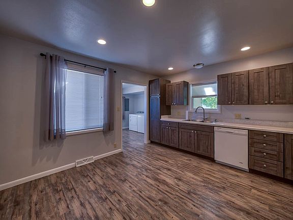 NEW PRICE ! This is one of the cleanest, well-kept properties you have seen in a while. All on one level you will find lots of great updates. The kitchen and bathroom are modern and bright, nice blinds give you as much or as little privacy as you need, easy to take care of flooring runs through the whole house. The second bedroom is small and would best be used as an office or craft room. The roof on both house and garage new in 2019, seamless steel siding on both house and garage in 2018 and the oversized two-car garage (936 sqft) will make you want to tackle those projects, it's wired for garage door openers, just waiting to be added. Nice corner lot with Trees (3 Apricot Trees!), a sprinkler system (on a well), back AND front to keep that grass beautiful. The back is fully fenced, there's even a garden spot or play area for kids or your dogs. Make this property your home - don't wait, come see it today!