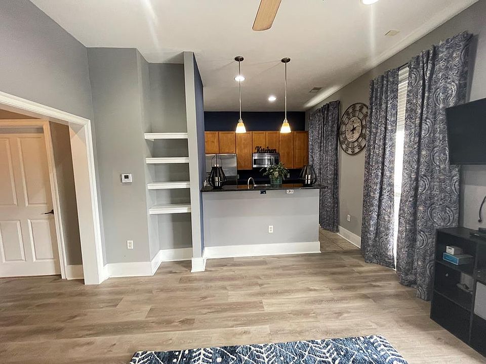 DOWNTOWN LIVING AT IT'S BEST! This fabulous 1BR/1BA Condo is conveniently located walking distance to Beale Street, Riverside & alldowntown attractions! Beautiful all new vinyl plank flooring thru out except tile in kitchen, bath, & utility closet. Open floor plan ideal for entertaining. Great kitchen w/granite countertops & SS appliances that stay. Stackable washer/dryer in laundry Rm stay! Breakfast bar seating! Drapes say. Soaring ceilings. 1parking place provided. Walk-in Closet in BR and a single closet, Internet & cable are included i and paid by HOA