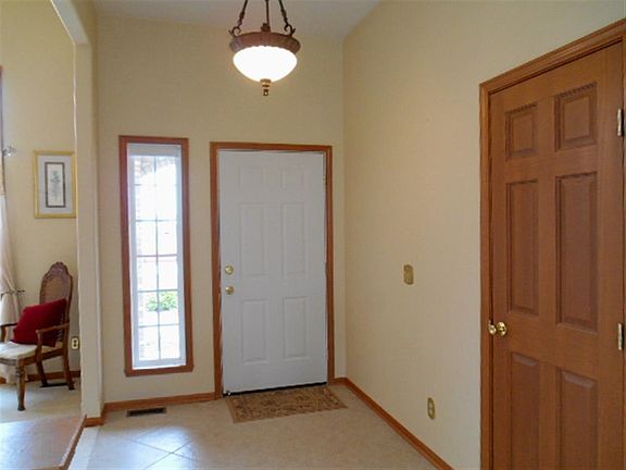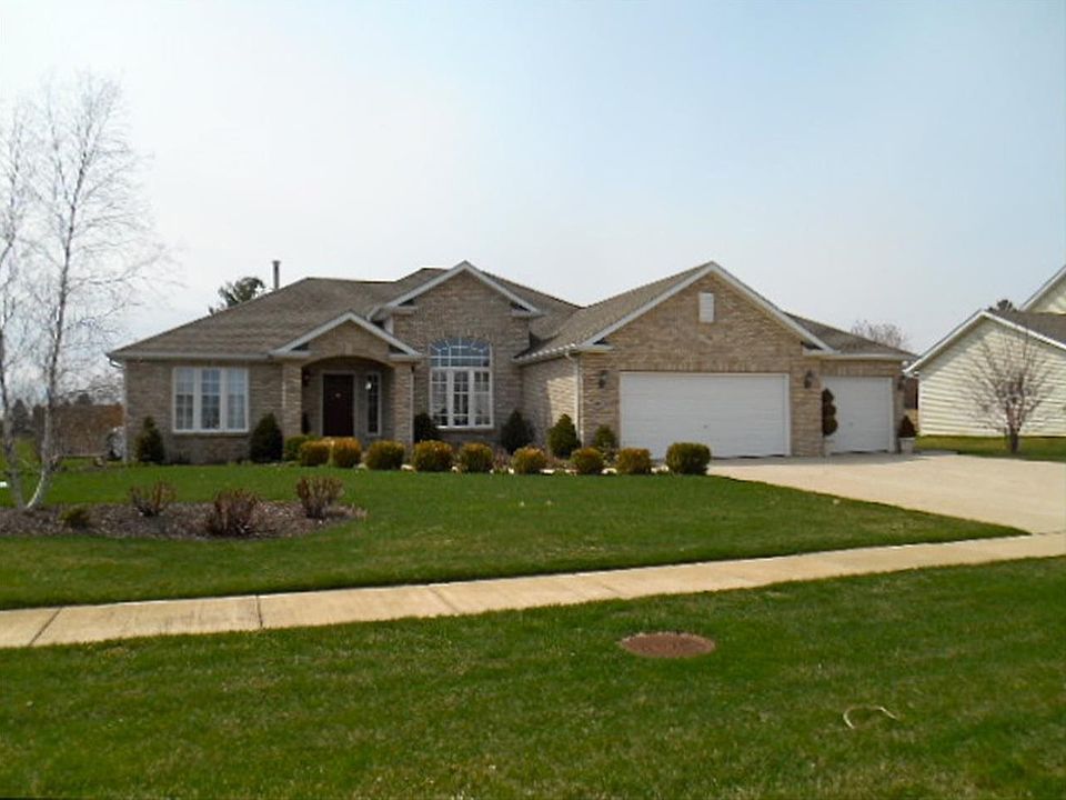 STUNNING SPLIT BEDROOM RANCH with volume ceilings. Bright and open floor plan features 3 bedrooms, 2 baths, large kitchen, great room, formal dining room, and 6-panel doors throughout. Kitchen has many cabinets, lots of counter space, a breakfast bar and includes all appliances. Spacious master bedroom has walk-out patio, a private bath with double sinks, whirlpool tub, shower and walk-in closet. Ceramic tile in the kitchen, entry, both baths and laundry room. The exterior of the home has an all brick front, concrete driveway, is professionally landscaped and has an in-ground sprinkling system. Finished and insulated 3-car garage. This home sits on the 12th hole of the golf course, has beautiful views and gorgeous yard. County taxes. See it today!