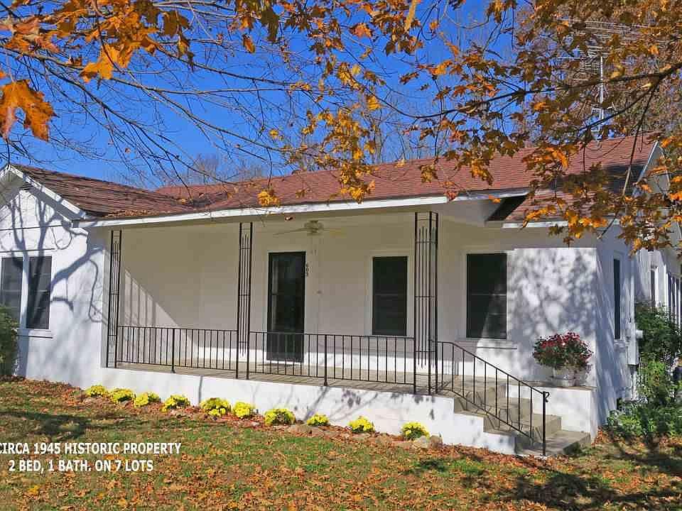 "This old house" has been refreshed but remains a fine historic home from circa 1945. And she is ready for a new owner. Architectural features remain untouched such as arched doorways, original gleaming hardwood floors and most of the original doors remain. 2 bed, 1 bath updated with fixtures & flooring. Large living room, formal dining room, galley style kitchen and the appliances stay. Old fashioned sleeping porch that spans the width of the home. Washer/dryer hook up here. Cellar/basement seems to be watertight and not musty. New Furnace, electric service, plumbing and paint throughout. Detached 2 car garage with workshop area. Located on 7 lots that measure 25'x130' each lot. Looking to make a little history yourself? This may just be the home for you!
