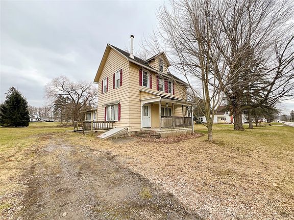 Bring your paint brush, ideas and restore this farmhouse back to it's former glory. This 4 bedroom, 2 bathroom home has a ton of potential sitting on almost an acre of land! First floor features a spacious eat in kitchen with a breakfast bar, first floor laundry located off of the kitchen, full bathroom and living room that opens up to the front porch. Upstairs you'll find four good sized bedrooms and a full bathroom. Other features include a grand covered front porch, attached garage and a bonus shed for additional storage. Updates include: vinyl windows, instant on demand hot water heater: 2019, newer water softener system: 2018, newer furnace and tear off roof done in 2006. With a little bit of creativity and TLC this farmhouse would be great for any owner occupant or investor! Property being sold as-is, Seller will not supply or pay for instrument survey or abstract. Seller offers no representations or warranties. No delayed negotiations in place, schedule a tour today!