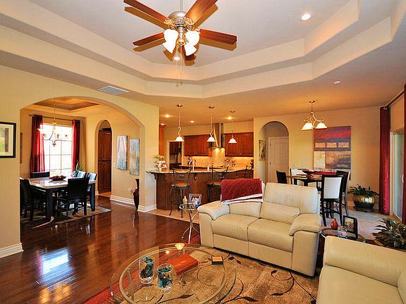 This home comes Fully Furnished!! Elegant and fashionable home in Copper Leaf! This quality custom 1-owner home is like new and has incredible beauty, quality, and upgrades. Great for 55+ Amazing kitchen has granite countertops, stainless steel refrigerator, dishwasher, stove, double wall ovens, slide-out drawer microwave, glass & features, and smooth cooktop. Spacious living room with hardwood flooring and beautiful gas fireplace is open to the kitchen, formal dining room, and dining area - great for entertaining. Large master suite has nice sized bedroom, master bath with large walk-in closet, insulated jetted tub, huge tiled walk in shower,