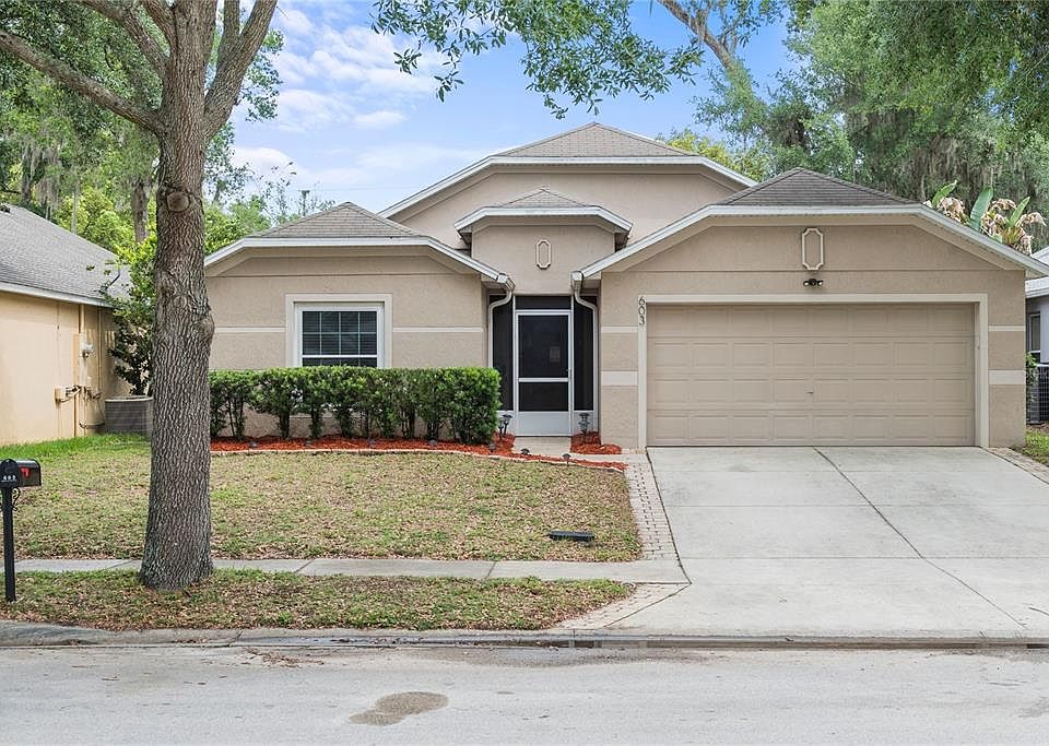 This split plan home is a 3 bed with den (just needs a closet to be a 4th bedroom) in Blue Springs Villas is ready for you to make it yours. As you open the front door, you are greeted by a spacious foyer and 2 nice sized bedrooms. This home has a nice sized dining area and den/4th bedroom, that is currently used as a playroom. The kitchen was renovated with custom cabinetry and soft-close cabinets, granite counter tops, and bar top island. And comes equipped with all stainless steel appliances. There is a good sized eat in kitchen area. The kitchen opens to the family room area. The primary suite is located in the back of the home with dual sinks in the master with granite counter tops as well. The shower has dual shower heads and private commode area. Ceiling fan/light combos in family and all bedroom roods. With the high ceilings in the home, it makes it feel even larger. The home has had new windows installed as of 2018. Blue Springs Villas is near all the shopping areas you are looking for, Advent Health, I-4, and more. Price to sell.
