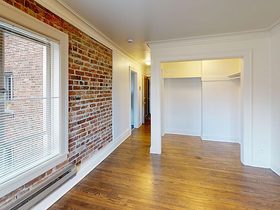 Full kitchenExposed brick wallsHardwood floorsLarge windowsSpacious walk-in closet