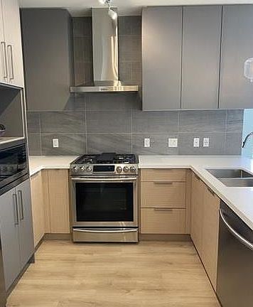 Spacious two bed + two bath corner unit home at Regan West by Marcon. This amazing home features an open floor plan with 9' ceilings, large living/dining space great for relaxing/entertaining and covered balcony perfect for BBQ's. Chef inspired gourmet kitchen with quartz countertops, stainless steel appliances, gas range and lots of cabinets/cupboard space. Master bedroom with spa-like ensuite with soaker tub. Located steps to the Burquitlam SkyTrain station, shopping, and 5-minute drive to SFU. Comes with 1 parking and 1 storage locker. Showings by appointment Sat/Sun 11:00am-1:00pm.