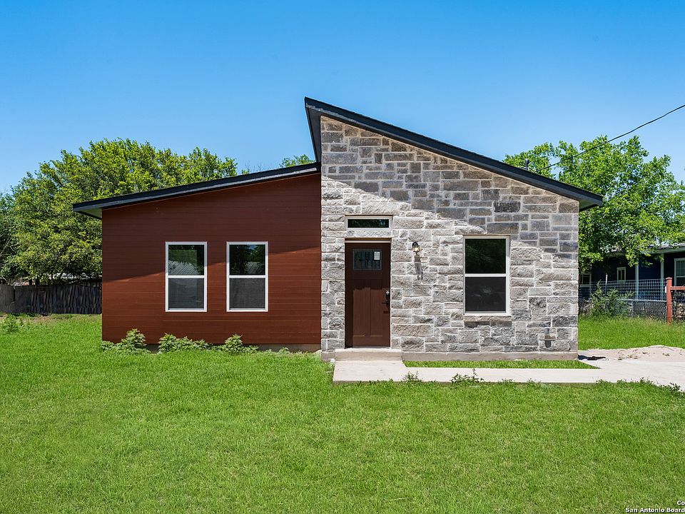 Build to be complete Late March/ Early April. Structure is complete**** BEAUTIFUL modern contemporary new build home in the rapidly growing east side San Antonio! This home will be 1600 sqft 4 bedroom 2 full bathroom plus office space. Vaulted ceilings throughout, an open floor Plan & white concrete floors! The kitchen is perfect for entertaining with a large island, stunning back splash, Quartz countertops, stainless steel stove & walk in pantry. The master bed & bath are to die for! Large master redroom with double vanity in the bathroom, walk in shower, free standing tub, plus his & her closets. HVAC & appliances are all NEW!