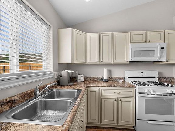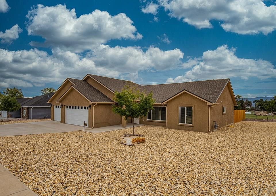 Built in 2018, this ranch-style home in Coyote Ridge offers modern comfort with brand-new carpet in the living room and bedrooms. The open floor plan features a spacious family room and a kitchen with a breakfast bar, quality appliances, and plenty of natural light. The primary suite includes a 5-piece bath with a soaking tub, walk-in shower, and dual vanities. Two additional bedrooms and a full bath provide flexibility for guests, hobbies, or a home office. Enjoy the low-maintenance stucco exterior, completed landscaping, and a welcoming covered entry. A 3-car attached garage with 220V service connects directly to the laundry/mudroom, making everyday living easy. Situated on a level .33-acre lot with mountain views, this home is move-in ready and minutes from downtown Canon City's shops, restaurants, and historic charm. Outdoor enthusiasts will love the area's access to hiking trails, the Arkansas River, and Royal Gorge attractions. With its quiet setting, views, and proximity to everything Canon City offers, this home is the perfect balance of comfort and convenience.