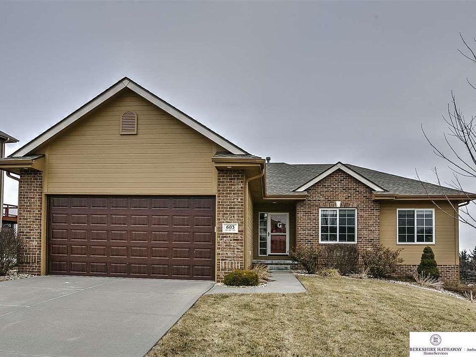 Stunning home in quiet Ft. Calhoun is better than new. Open main floor with 9'+ ceilings. Spacious dine-in kitchen features custom cabinets, SS appliances & walk-in pantry. Master bedroom w/tray ceiling & en suite 3/4 bath w/double sinks & WIC. Enjoy entertaining in the huge family room pre-wired for surround sound & double TV's. Walk out lower level also has a guest suite w/3/4 bath. Water heater 2013, A/C 2014 & new roof in 2014. Fantastic lot w/deck, patio, full fence & no rear neighbors. AMA