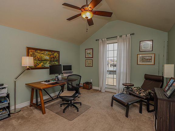 Don't miss this 3 bedroom, 2 bath well appointed home. Open dining ,living area with additional casual seating space that gives you many options, kitchen featuring cooktop, wall oven and microwave, large bar with granite countertops, spacious primary bedroom is secluded with double tray ceiling, private bath with jetted tub, separate shower & large walk in closet, additional two bedrooms are nice sized, covered patio and some fencing in back yard make for a peaceful space to enjoy, front loading two car garage has side door with a concrete sidewalk to back yard, storm shelter in garage, washer, dryer and refrigerator to remain with the property.