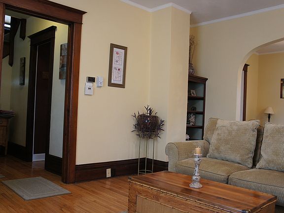 Listing provided by owner, email or call with questions. Sunny, classic, energy efficient home with many updates. Within last 10 years bath has been remodeled, all new low E-windows (except two), carpet, crown molding in bedrooms, hot water heater and appliances. Newer furnace, siding/soffit/gutters and composite front porch. Original woodwork with hardwood floors and built-ins in living/dining rooms. Beautiful open stairwell. Bright, clean eat-in kitchen with solid oak cabinets. Back deck overlooking large double lot with wooden privacy fence. 1 1/2 stall garage with double driveway to park four additional cars. Close to parks, schools and hospital. Stove, fridge, microwave, dishwasher, washer, dryer and upright freezer in basement stay. Water softener rented. Buyer to verify square footage. For sale only, no rent or rent-to-own. LR 17x13 DR 13x9 K 14x12 Bath 8.5x8.5 B1 13x12 B2 13x13