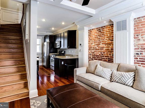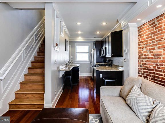 Don't Miss This Gorgeous 2 Bedroom, 2 Bath Brick Front TH, Perfect For All Your Needs! Beautiful HW Floors Throughout Main Level Living Room & Gourmet Kitchen w/ Recessed Lighting, Coffered Ceilings, Exposed Brick, Granite Counters, SS Appliances & Breakfast Bar! Upper Level Master Suite w/ Tray Ceilings, Walk-Through Closet & Huge Attach Bath w/ Dual Vanities & W/D! Roof Top Deck & Parking Pad!