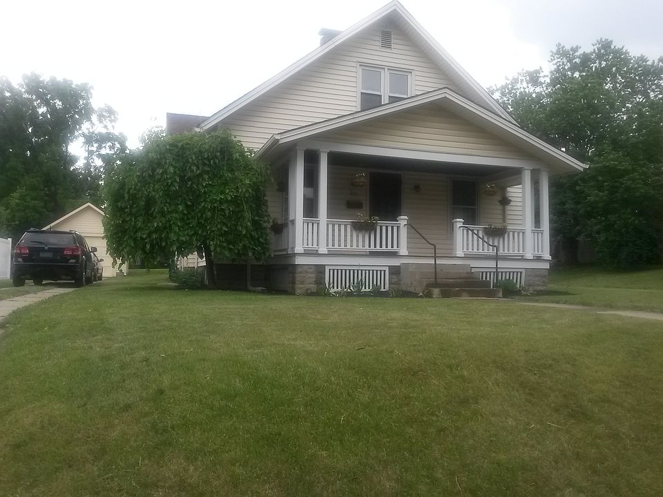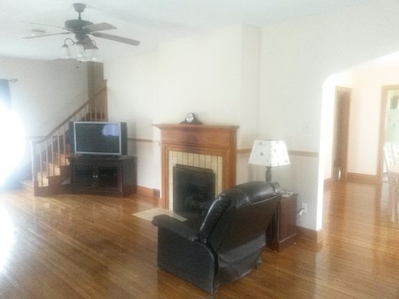 Large 4 bedroom/ 2 bath, two story home on a corner lot with 100' deep back yard. 2/3 basement. Newly refinished wood floors and fresh paint throughout. Two fireplaces (gas on 1st floor, wood in basement). (New roof, central air, 200 amp electrical box in last 10 years). Single car detached garage. 2 bedrooms/ 1st floor. 2 larger bedrooms/ 2nd floor.