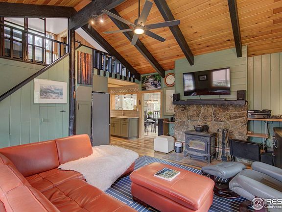 The quinessential all-season mountain cabin on a gorgeous three acres of forested land in highly sought-after Triple Creek. This delightful mountain cabin has it all....character, views, and even an all-season crystal-clear mountain creek flowing directly out of Rocky Mountain National Park. Enjoy cool fall evenings with your Hearthstone wood-burning stove which supplements the efficient thermal storage heating unit and heating costs are further minimized by extensive solar panels on the roof. The interior has been remodeled to include an updated kitchen with all stainless appliances as well as all new flooring. Enjoy the amazing views of the Twin Sisters and the soothing sounds of South Fox Creek from the large wrap-around partially covered deck. There is even a large fenced area for your canine companions. Outbuildings include a shop and studio. It's a short walk to the Allenspark Trailhead for hiking to Finch and Pear Lakes in Rocky Mountain National Park. and it's only 25 minutes to Estes Park or 50 minutes to Boulder/ Longmont. Enjoy all that Allenspark has to offer including delicious meals at Rock Creek Tavern and Meadow Mountain Cafe as well as Tree Huggers Trading Post for unique gifts and coffee and the Old Gallery Community Center with a full schedule of interesting programs as well as crafts by local artisans. The cabin has been in the same family since built and is on the market for the first time ever.