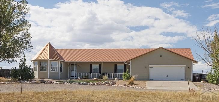 Large 6 bedroom home on paved street, 2.64 acres, open floorplan with large kitchen, breakfast nook, dining and living area with an enclosed sun room. Big Master bedroom with 5 piece master bath and walk in closet. 2 additional bedrooms on the main level, spacious laundry and an oversized 2 car garage. Basement has 3 additional bedrooms with walk in closets, play room and a big family room and kitchenette. 2 stall loafing shed with hay storage, fenced horse pasture. Off the dining area has a large patio with a dug out/ground level trampoline. Land backs up to the walking/horse riding trails. Metal roof, radon system. Walking distance to Sierra Vista Elementary and Pueblo West High School. Beautiful mountain views!! Space for everyone, country feel yet close to the amenities of Pueblo West..
