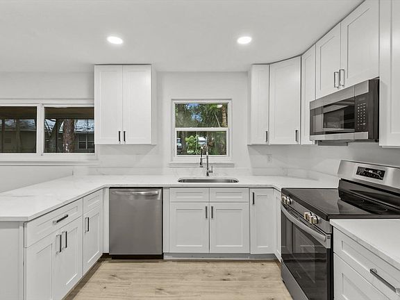 Large price improvement! Showings must be scheduled with Showingtime or Sentri. Exquisite 3-bedroom, 2-bathroom residence on large .41 acre property. Split floor plan. The gourmet kitchen boasts luminous Calacatta quartz countertops, bespoke soft-close shaker cabinetry, and premium high-end finishes, designed to inspire culinary excellence. Luxurious spa-inspired bathrooms, gorgeous vanities, and contemporary fixtures. Impeccable waterproof laminate flooring, freshly painted interiors and exteriors, and brand-new, top-tier appliances blend style with functionality. Enjoy effortless access to I-95, premier shopping, and dining, with the freedom of no HOA restrictions. Metal Roof 2016, Solar panels 2018, HVAC 2022. Solar panels paid off. Please see broker remarks.