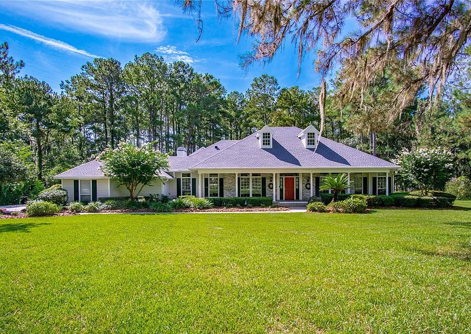 An Offer has been accepted - BACKUP OFFERS WELCOME. FantaBuLous Pool Home on 6.40 Acres in SW Gainesville. 5 BR / 3.5 BA (5th BR is a Study) Exquisite with Brick on front exterior, large front porch, wood floors in the front entry, formal dining, and family room areas. Very large master suite with access to the study. Spacious open kitchen to the family room, breakfast nook, and breakfast bar. Stainless Steel appliances and Granite in the kitchen. Wood burning fireplace and extra large laundry/utility room. Both guest bedrooms have additional stairway access lofts, and the 4th bedroom is large with a full bath. This luxury area of town is located in SW Gainesville near Haile and Haile Village Publix - HOA currently has no fee - Horses are allowed in this contemporary ranch neighborhood. This home is located on a cul-de-sac and the property goes all the back to SW 8th Ave. Occasional deer seen on this property. This home has a lovely view - and is a Must See.