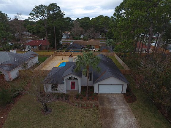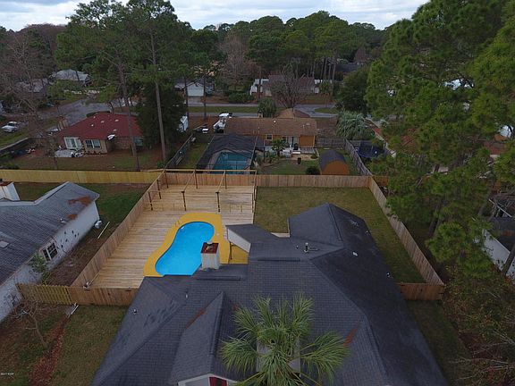 Treasure Palms, Panama City Beach, presenting a completely remodeled three bedroom, three bath room home with a pool and brand new deck and privacy fenced yard, no hoa fees and no flood insurance required! No expense spared in the remodel with new granite counters, new stainless appliances, new paint and new flooring and new bathrooms and fixtures throughout the home. The floorplan is split for additional privacy and the master bathroom features separate deep tub, double vanities and separate shower. The exterior is newly sodded, new deck and the pool is perfect for entertaining and cooling off! The pictures do not do it justice, come visit today!