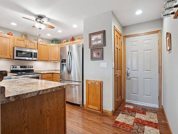 Welcome to the RIVER!!! Whether you enjoy the river from land or from your boat, this condo has everything you'll need to do just that! Located on a quiet cul-de-sac on the Mississippi River, you'll find this beautifully maintained 3 bedroom, 2 bath condo. This no-step entry, corner unit has an open floor plan that allows you to have an amazing view of the river from the kitchen, dining or living room! The kitchen offers island seating for 4 or more, the dining room gives way to the awesome river views and the living room has space to relax by the fireplace or with your favorite show. This condo features an oversized master suite, with it's private patio & 2 other bedrooms for family and guests! The laundry is centrally located near the bedrooms and the bath. An added bonus - the condo comes fully furnished! You will want to start and end every day on the wrap-around, covered patio - invite your friends and family - there's room! A new furnace, A/C, and water heater were also installed within the last year. The best part!? You can enjoy direct river & dock access literally right outside your door! Take the elevator or the stairs to your boat lift & you'll be on the river in no time! Your toys will have a home, too, with a 34' deep garage (10' wide door), ideal for your boat, vehicle, golf cart or river gear. Another perk of this property - a swimming pool! Cool off after a day on the river or soak up the sun! Just a short walk, (or an even shorter golf cart ride) to the park, softball field, restaurants, and friends, you’ll enjoy small-town charm with everything at your fingertips. And with the HOA handling all of the maintenance, you can focus on enjoying the things that matter the most! Whether you plan to live here full-time or use as a 2nd home, this property offers everything you'll need! This unit is in a prime location - facing the river, near the elevator to the docks and located on the corner. If you're ready to ditch the mower & snow blower and go all-in at the river - call today!