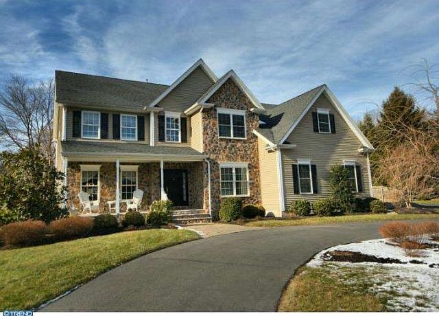 Look no further...bright, open, and airy custom colonial in the heart of desirable Hopewell Valley. This well-appointed, meticulously maintained home offers a smart, flexible floor plan which makes it large enough for entertaining family and friends, yet completely exudes a warm, cozy feel! Pull into your circular driveway, and enter under the quaint covered front porch into the 2-story cathedral foyer. First floor is home to living and dining rooms, den/office, spectacular gourmet kitchen with granite counter tops, wet bar, and large center island overlooking the beautiful back yard. Laundry room is also conveniently located on the main level. You will simply love spending time in the 2-story family room...windows galore, gas fireplace, and back staircase to the upper level. Second floor is home to a large master suite with sitting room, built-in bookshelves, huge walk-in closet, and large neutral master bathroom. You will also find 3 additional ample-sized bedrooms and full bath on upper level. Outdoor entertaining is easily accomplished on a private deck surrounded by beautiful paver patio space and lovely landscaping. Large yard provides plenty of room to play for all members of the family! THE BEST OF BOTH WORLDS...experience the joy of home ownership in a lovely, tranquil setting, while being in a commuter friendly location. This home is WORTH A LOOK! Come see and stay.