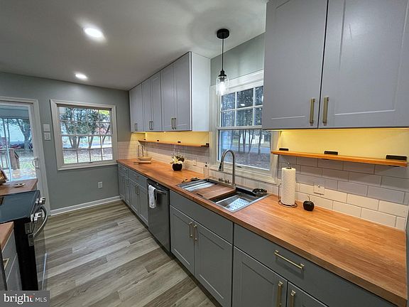 This inviting 3-bedroom, 1-bath home is ready for you to move right in! It features a brand-new roof, new luxury vinyl plank floors, fresh paint, and new doors throughout. The bathroom has been updated, and the kitchen is truly a standout. With ceiling-height upper cabinets for extra storage, butcher block countertops, and under-cabinet lighting, the kitchen is both functional and stylish. The deluxe sink is a thoughtful addition, offering a deep, wide basin with a waterfall and a cup-washing feature. The open living and dining area includes a fireplace, creating a cozy space for gathering. Energy-efficient ductless mini-splits provide zoned heating and cooling, giving you personalized comfort in every room while helping to save on energy costs. A bright Florida room off the kitchen provides additional living space, with large windows that let in natural light. The room opens to a deck, perfect for relaxing or entertaining. The large backyard, situated on a corner lot, offers plenty of space to play, including a playset for added fun. This home blends modern updates with everyday convenience. Come see it for yourself!